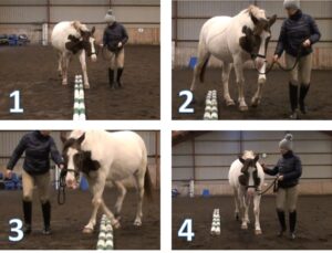 For at skabe en god balance i hesten, vil vi gerne have ’et ben i hvert hjørne’. Nogle heste er meget smalle mellem forbenene, når man ser dem forfra. Enten lige ned, smalle foroven og brede forneden eller omvendt – alle stillinger har konsekvenser for hestens balance, og i nogle tilfælde også dens sundhed. Over tid vil øvelsen hjælpe med at skabe mere bredde mellem forbenene og deraf mere stabilitet. Hestens muskulatur i skulderophænget (se her for mere) bliver bedre udviklet, han kan kva den øgede styrke bedre aktivere denne muskulatur og løfte ryggen og ganske gradvist komme vægt på bagparten, som vi ønsker af sundhedshensyn for vores rideheste.